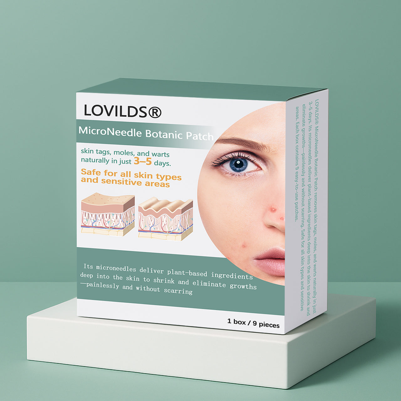 LOVILDS® Microneedle Botanic Removal Patch delivers active botanical ingredients deep into the skin to effectively remove skin tags, moles, and warts. This natural, safe, and efficient solution requires no surgery, causes no pain or scarring. Just apply the patch — and in as little as 5 days, gently restore smooth, clear skin.