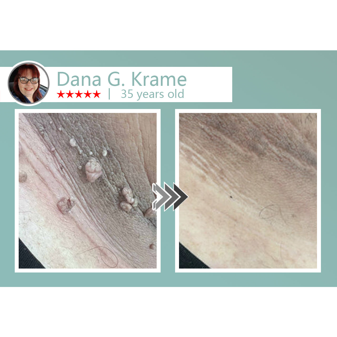"As a diabetic, I have very sensitive skin. The tags under my arm caused constant redness and itching. I avoided strong medications out of fear, but this patch was extremely gentle—no irritation at all. After two or three days they began to shrink, and by day four, they were gone. I can finally wear sleeveless tops again. I feel free!"