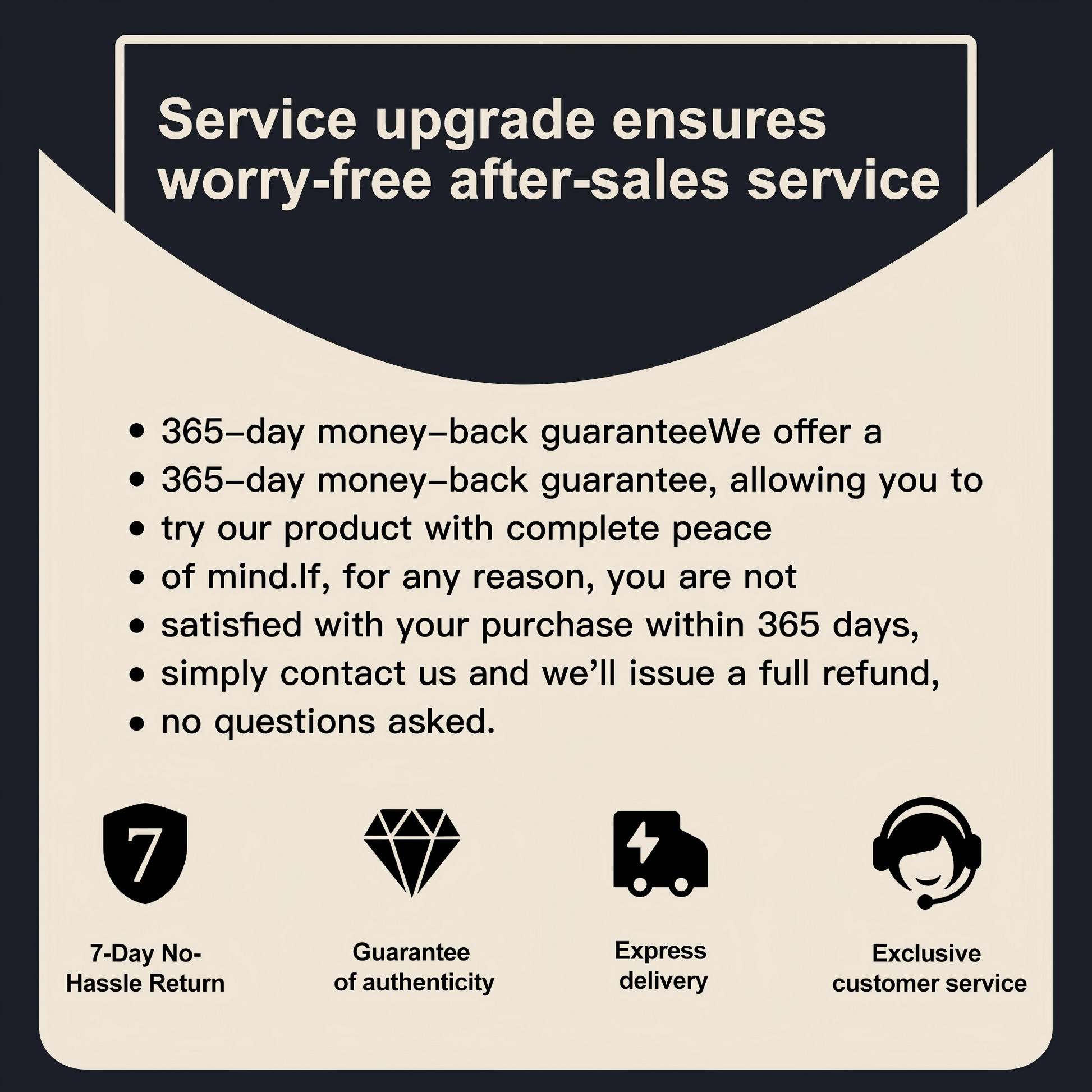 We offer a 365-day money-back guarantee, allowing you to try our product with complete peace of mind. If, for any reason, you are not satisfied with your purchase within 365 days, simply contact us and we'll issue a full refund, no questions asked.
